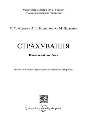 Журавка, О. С. (2020) Страхування: навчальний посібник. Сумський державний університет, Суми.