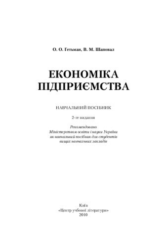 Гетьман, О. О. and Шаповал, В. М. (2010) Економіка підприємства: Навч. посіб. — 2-ге видання. Центр учбової літератури.