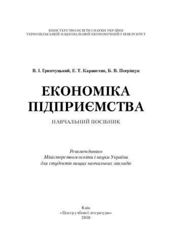 Гринчуцький, В. І. and Карапетян, Е. Т. and Погріщук, Б. В. (2010) Економіка підприємства: Навчальний посібник. Центр учбової літератури, Київ.