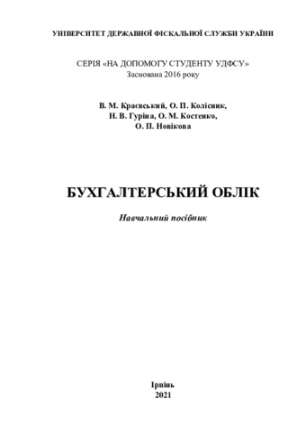 Краєвський, В. М. and Колісник, О. П. and Гуріна, Н. В. (2021) Бухгалтерський облік : навчальний посібник. Університет ДФС України, Серія «На допомогу студенту УДФСУ».